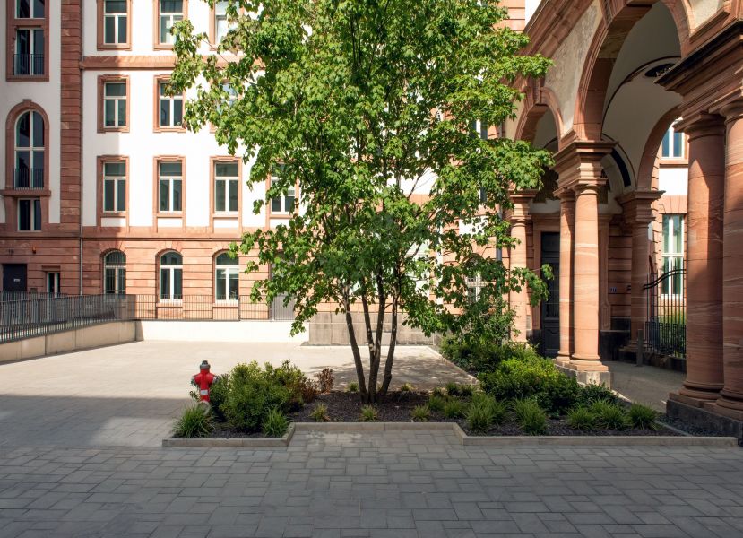 Die PGNU wurde beauftragt die gesamten Freiflächen (6.165 m²) des Senckenberg-Areals in Frankfurt a.M. neu zu planen, der Umbau erfolgte im laufenden Betrieb in zwei Bauabschnitten.